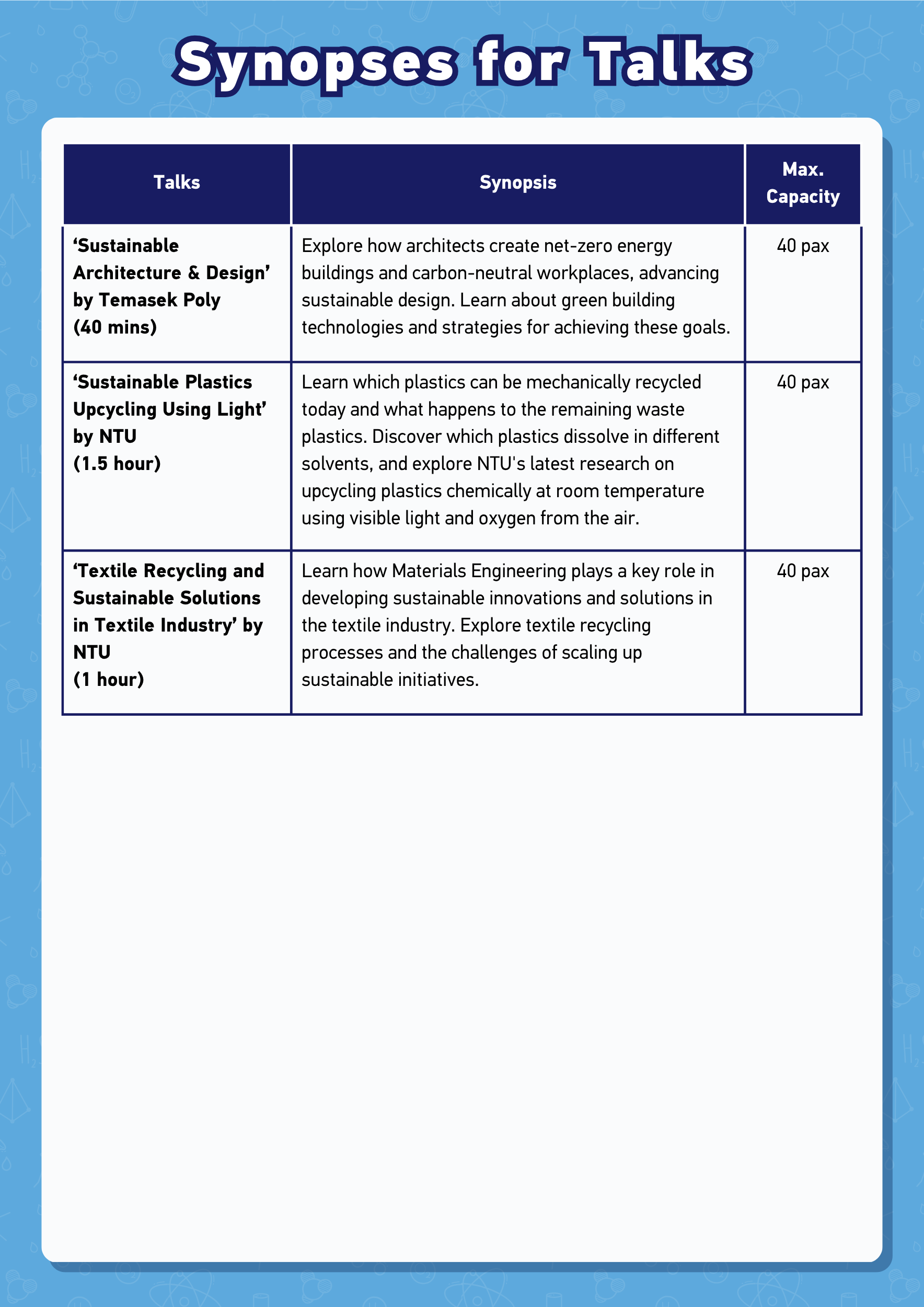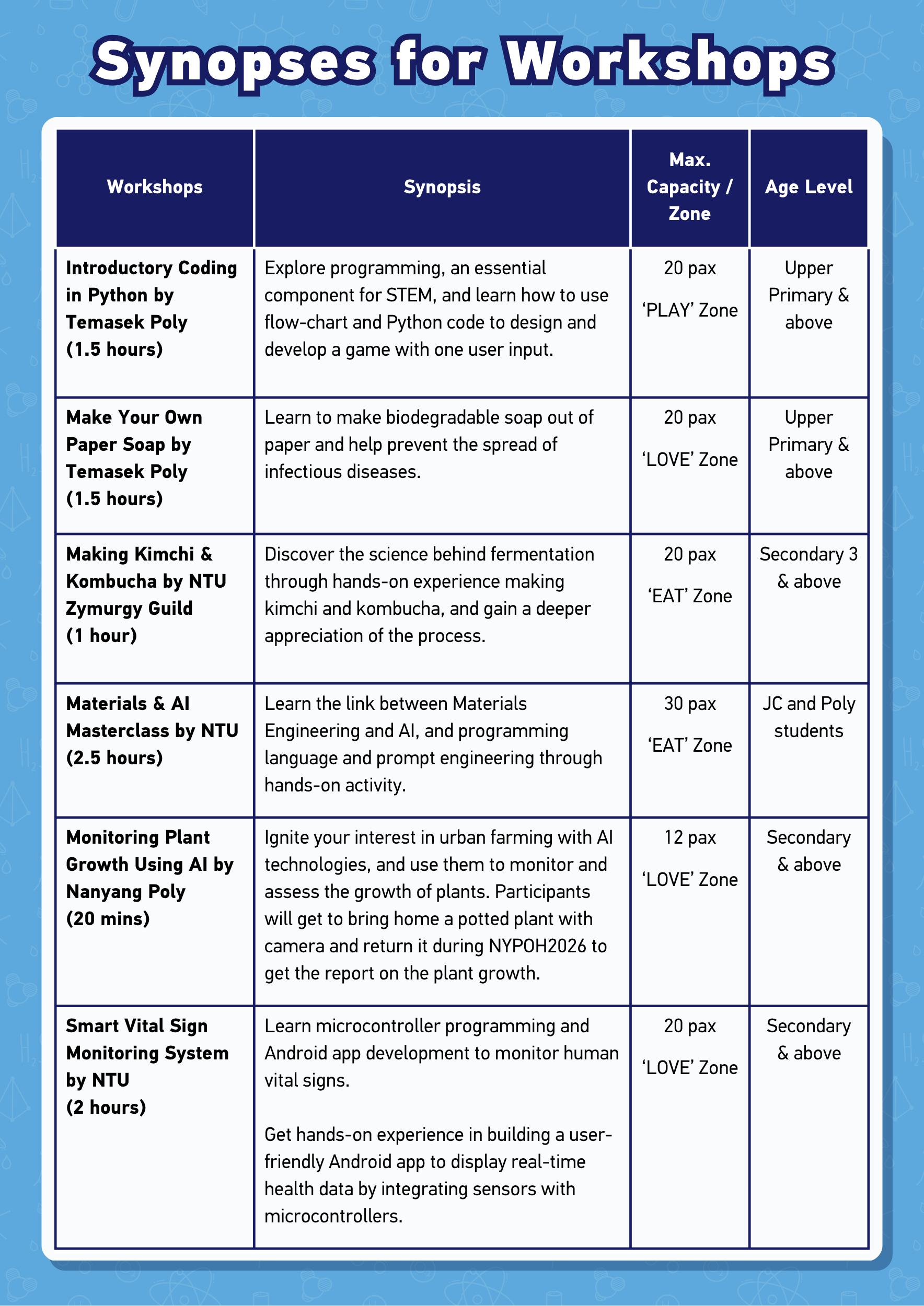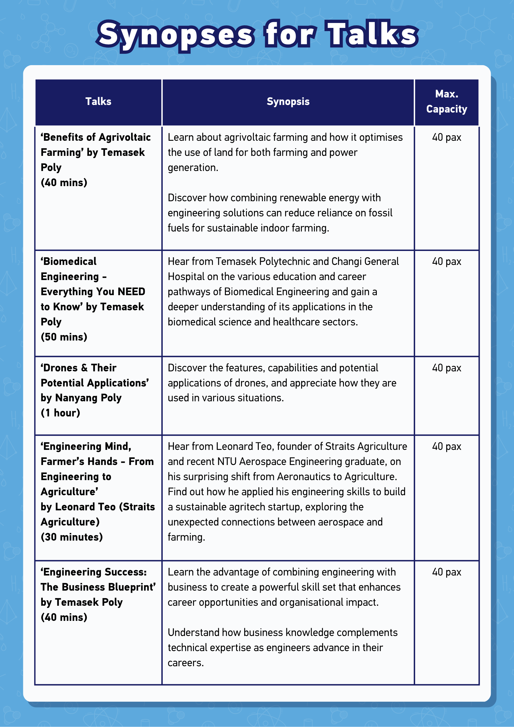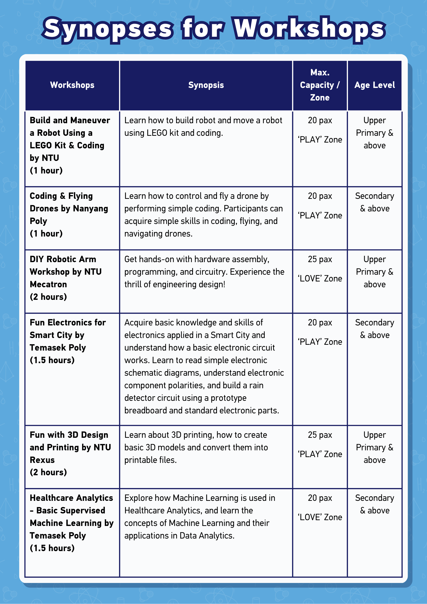 Take this chance to explore the different projects by our NTU College of Engineering students by attending the following activities at the NTU Open House!