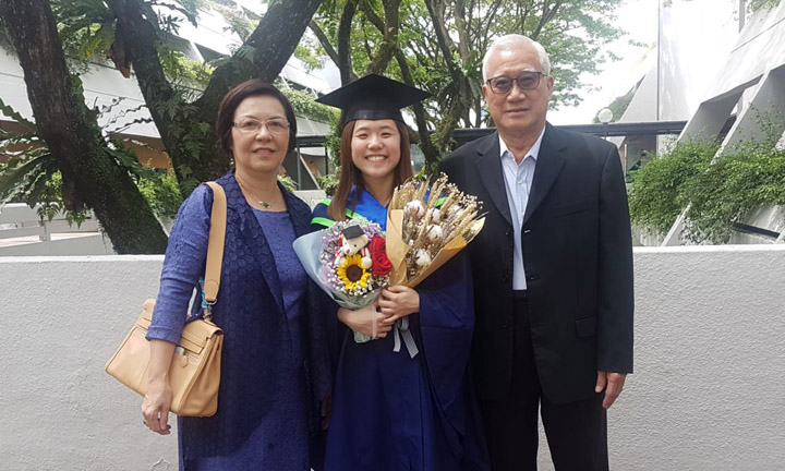Mr and Mrs Sim at Sandy’s graduation in 2018.