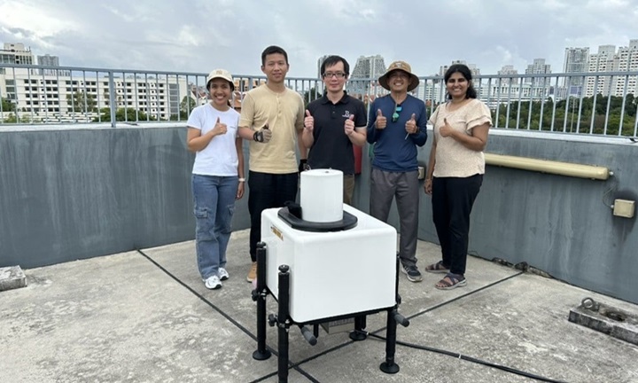 CCEH researchers with the second LiDAR system for the 3DREAMS@SG project. Installed on the rooftop of Raffles Girls’ School, this system joins the first LiDAR at the NTU campus, creating a robust network that operates 24/7 to monitor Singapore’s upper-level atmospheric environment.