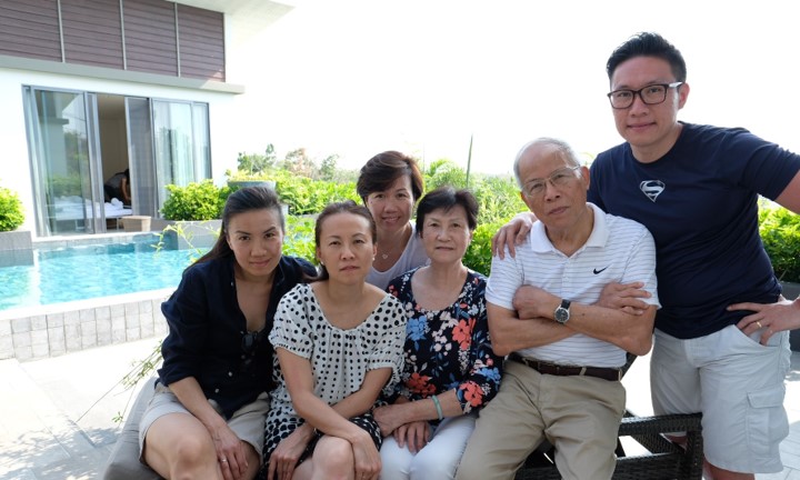 Darren with his sisters and parents (2nd and 3rd from right). Darren described his eldest sister, Leng (2nd from left), as a steady source of strength in their close-knit family.