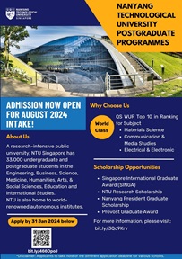 Graduate College at NTU seeks to promote intellectually stimulating environment within which cross-pollination of ideas can flourish between disciplines, students and their advisors. We emphasize the importance of holistic education, innovative framework, experience and collaborative learning. NTU’s graduate education aims to groom future thought and industry leaders by preparing graduates with comprehensive technical and transferable skills that will help them make global impacts beyond the Singapore ecosystem. Our students shall become leaders with character, competence and cognitive agility, ready to tackle challenges of tomorrow, to become change agents, and to make great societal impact.