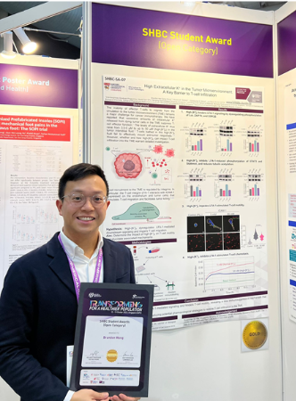 Brandon is a fourth year IGP PhD student supervised by Asst Prof Navin Kumar Verma (LKC) and Prof. Richard Webster (SPMS). The award is based on part of his PhD research explaining how high extracellular K+ ions in the tumour microenvironment inhibits T-cell motility. Congratulations Brandon !
