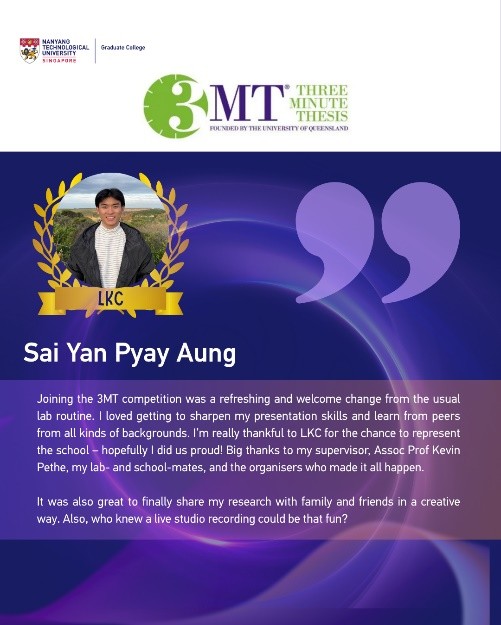 - Sai Yan Pyay Aung (Lee Kong Chian School of Medicine) – Third Place