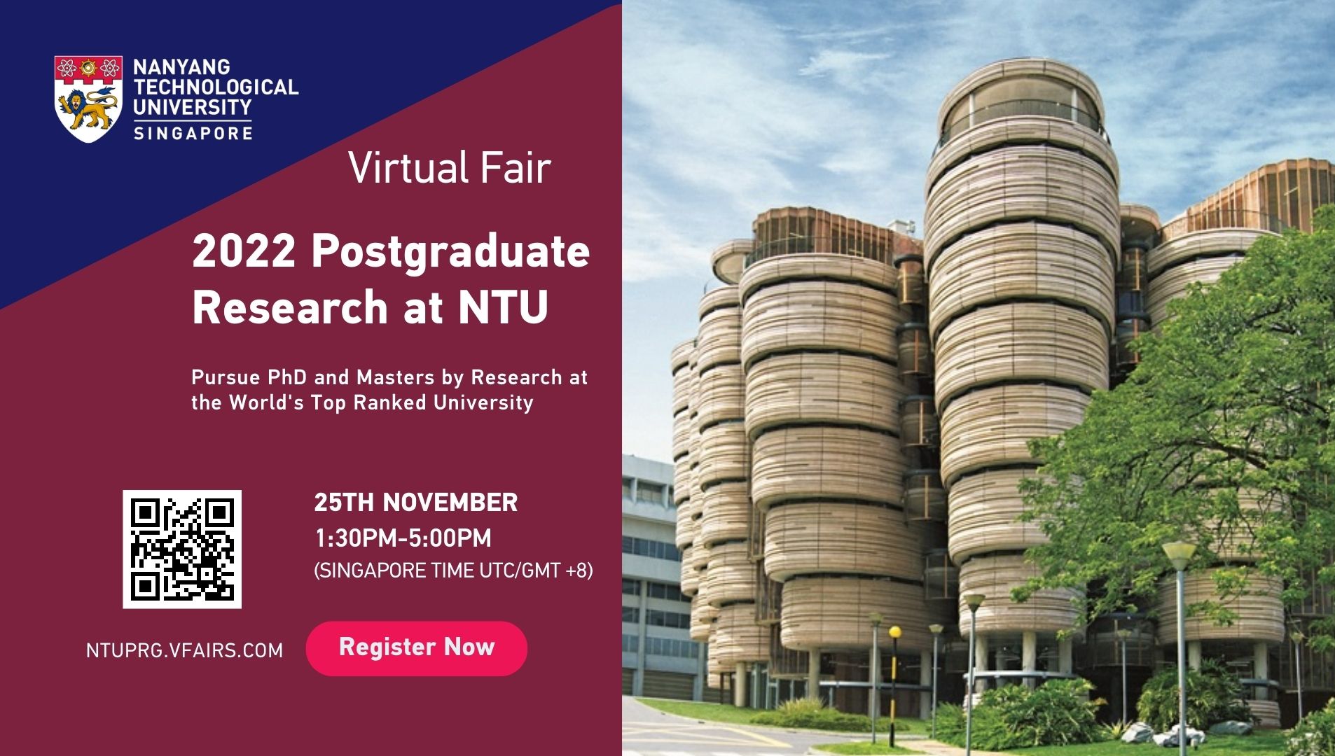 Interested in pursuing a PhD or Masters by Research Degree? Find out what NTU has to offer in this online event! This event will give you some insight into what it is like to be a graduate student in NTU, how to prepare your application materials, hear directly from professors regarding their exciting research, and for you to ask any questions you may have about applying to our program. Listen to our students and their journey in NTU and how NTU has helped them in their pursuit of excellence.