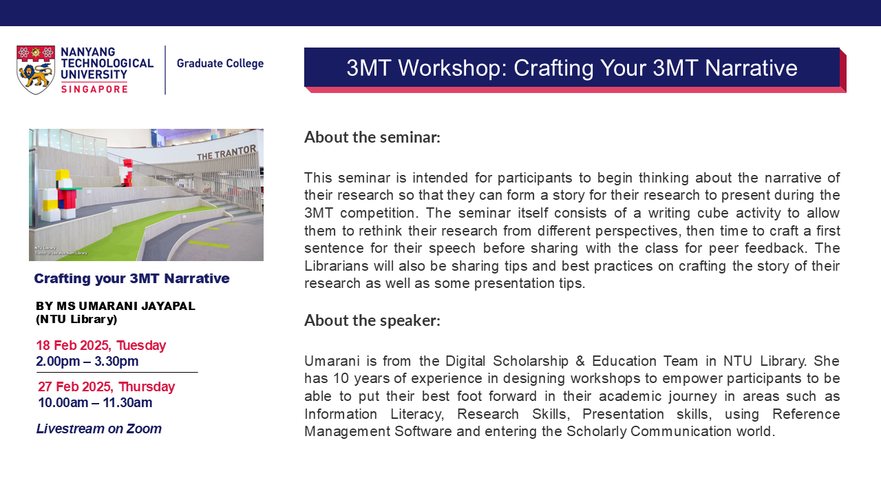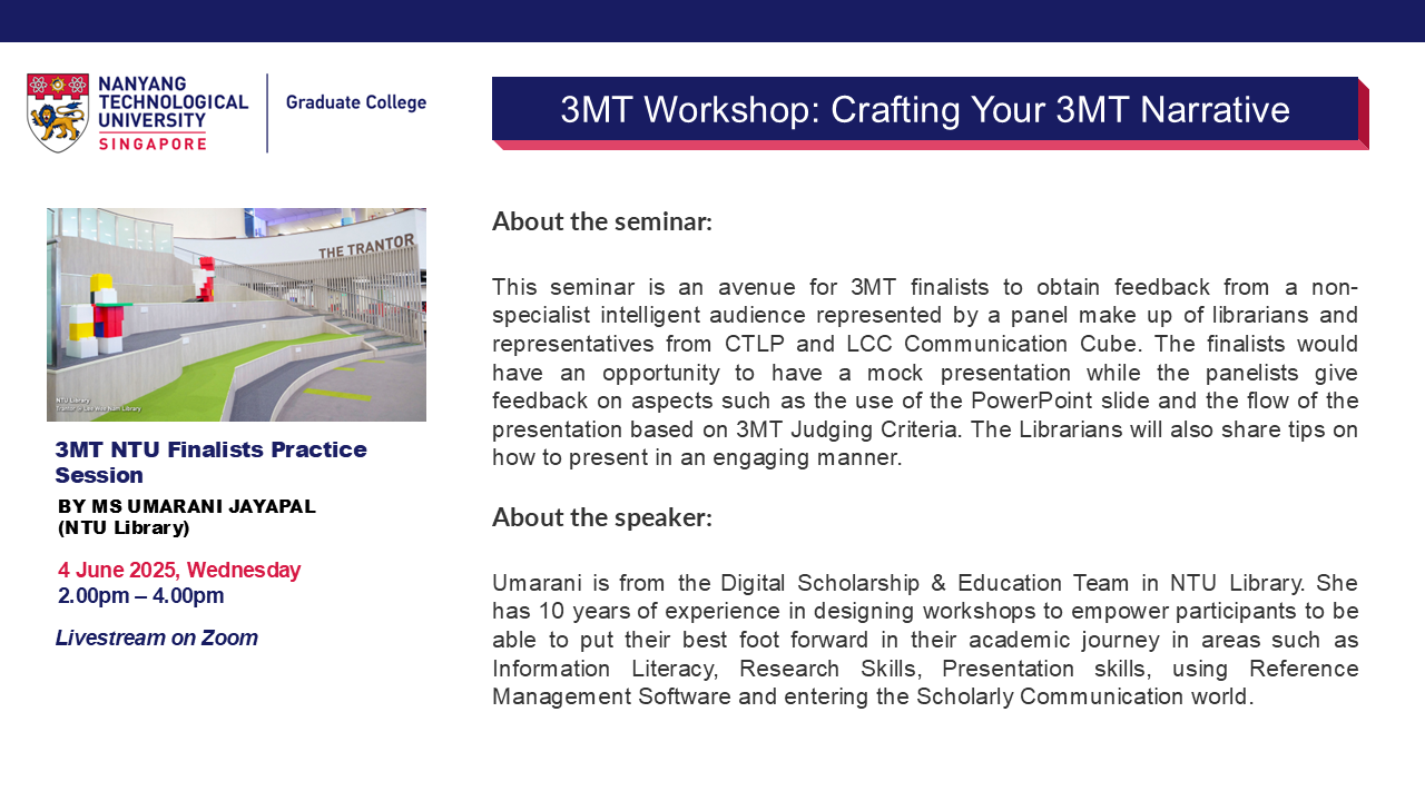 Title: 3MT Presentation Practice Session for NTU Finalists