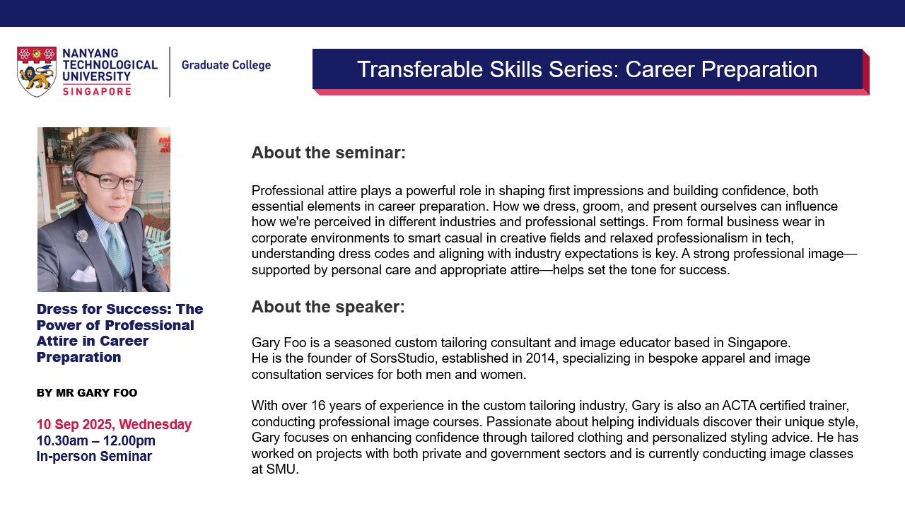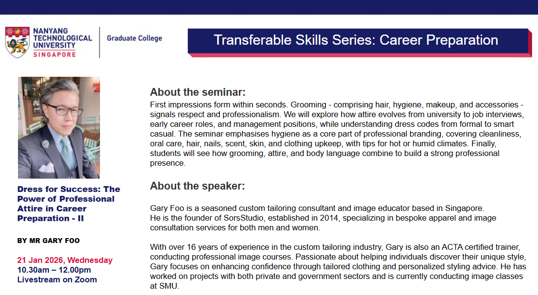 Title: Appearance and Presentation: in-person workshop - By Mr Gary Foo