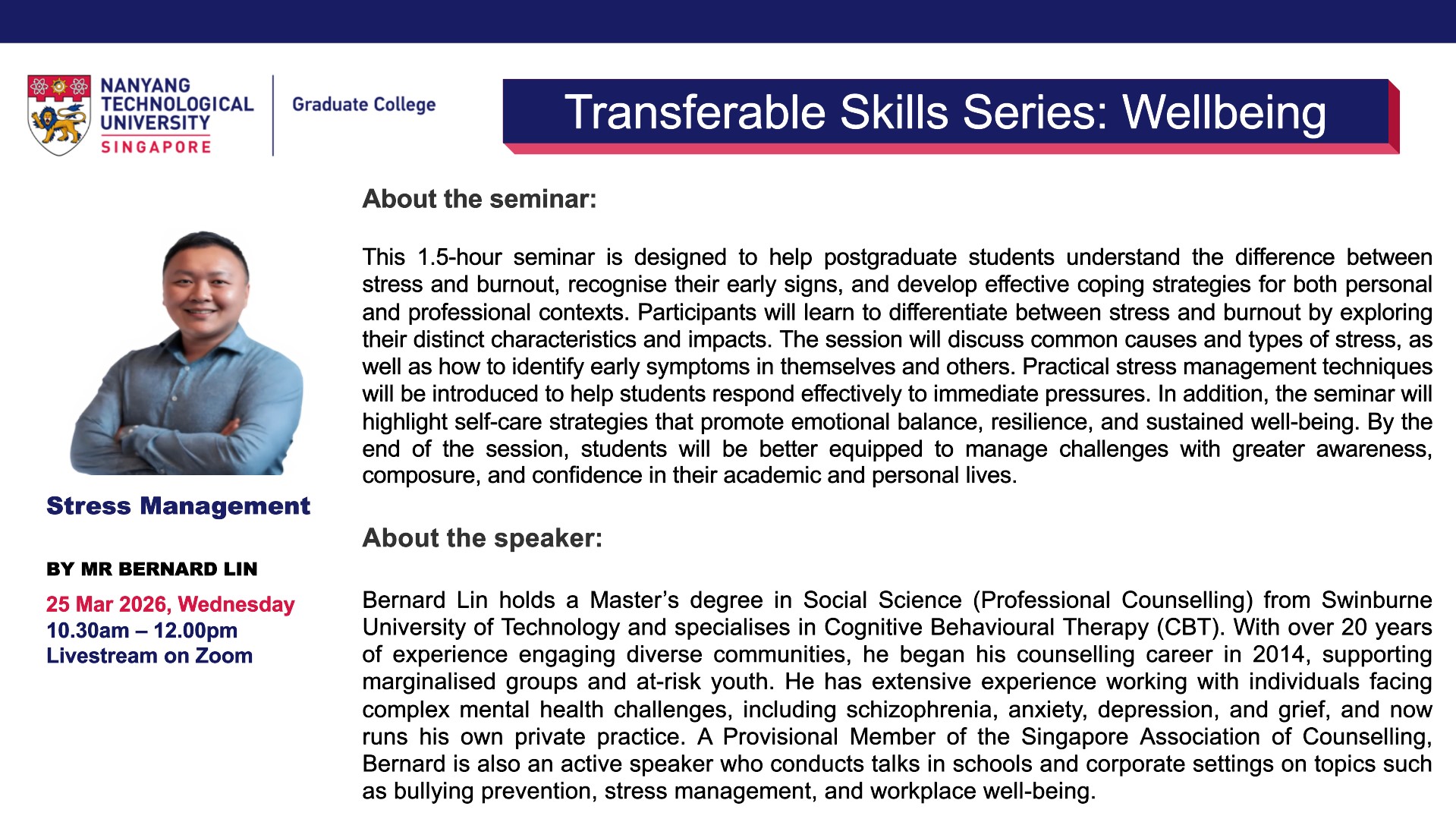 Title: Stress Management - By Mr Bernard Lin