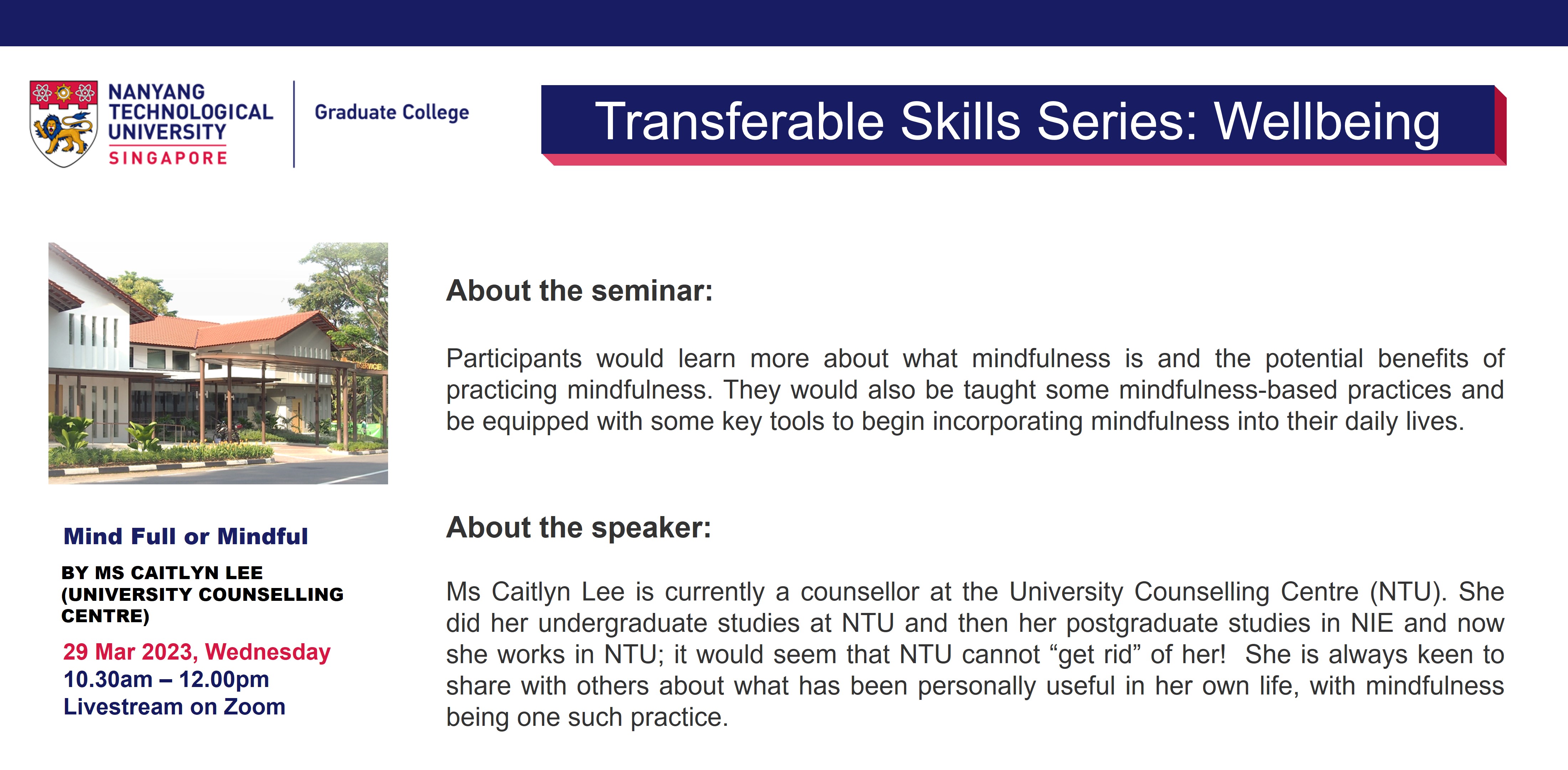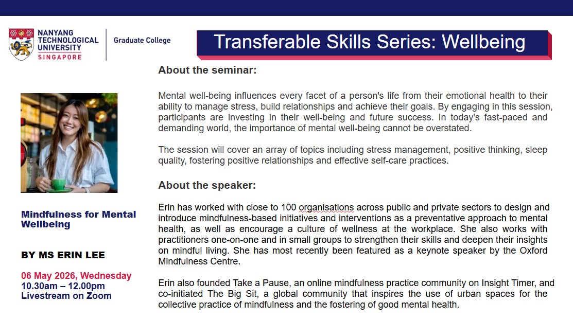 Title: Mindfulness for Mental Wellbeing - By Ms Erin Lee