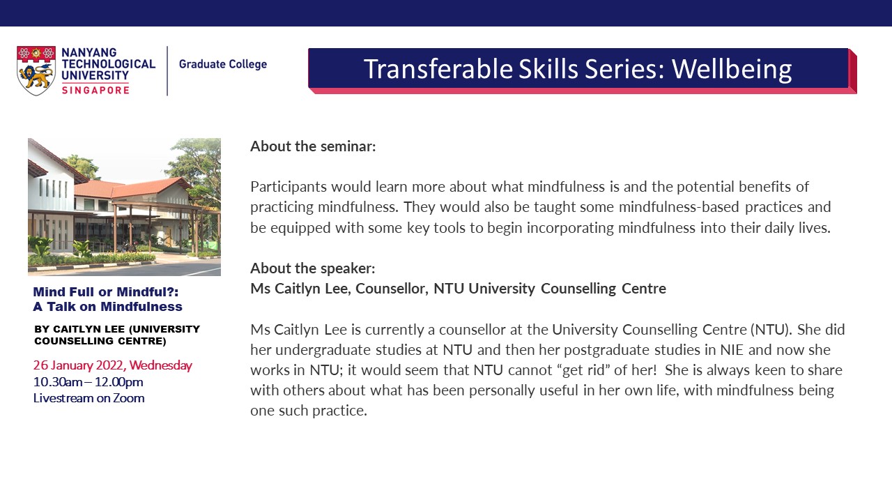 *Please note that students are required to stay at least 75% of the seminar’s duration in order to get their attendance endorsed. If the requirement is fulfilled, our system will generate an email attendance endorsement to your NTU email address within 3 working days after the session.