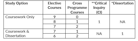 * To pursue the Dissertation option, students must have a cumulative grade point average (CGPA) of 4.00 or above. Students may require additional semesters to complete their project.