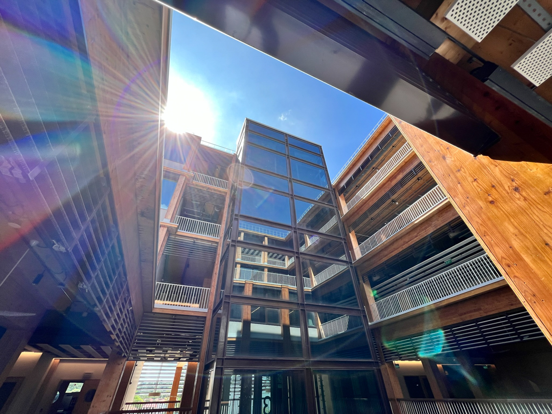 Named after the Greek goddess of the Earth, Gaia is the largest wooden building in Asia and constructed with mass-engineered timber harvested from sustainably managed forests. Compared to conventional concrete buildings, it emits 2,500 fewer tonnes of carbon dioxide a year – equivalent to over 7,000 roundtrip flights between Singapore and Hong Kong. It is also one of 10 buildings on campus with the Green Mark Platinum Zero Energy award, certifying that it consumes only as much energy as it produces.