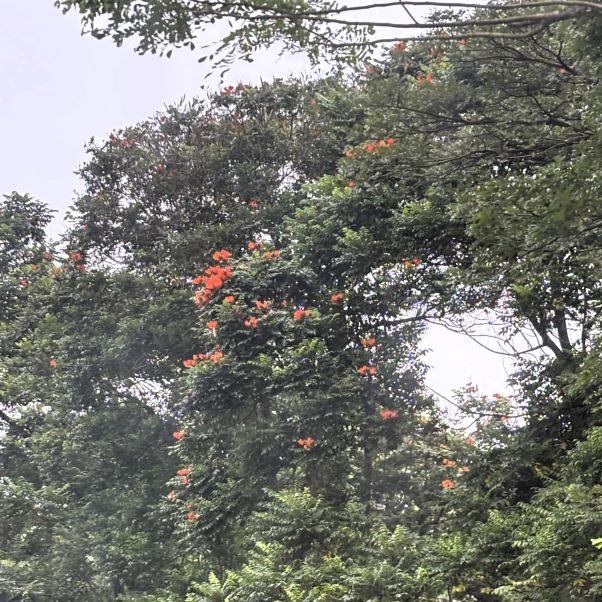 “One morning, I was on the campus shuttle from my hall to school when I noticed bright orange flowers blooming on a tree in the forested area near NIE. I’d never seen them before. I snapped a photo, and the sight of those flowers made my morning.