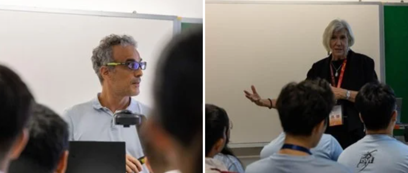 Assoc Prof Dario Poletti (left) dived into quantum computing with hands-on activities with various experimental platforms for studnets; and Prof Joan Rose (right) emphasises wastewater innovation as a top priority in today's water research.