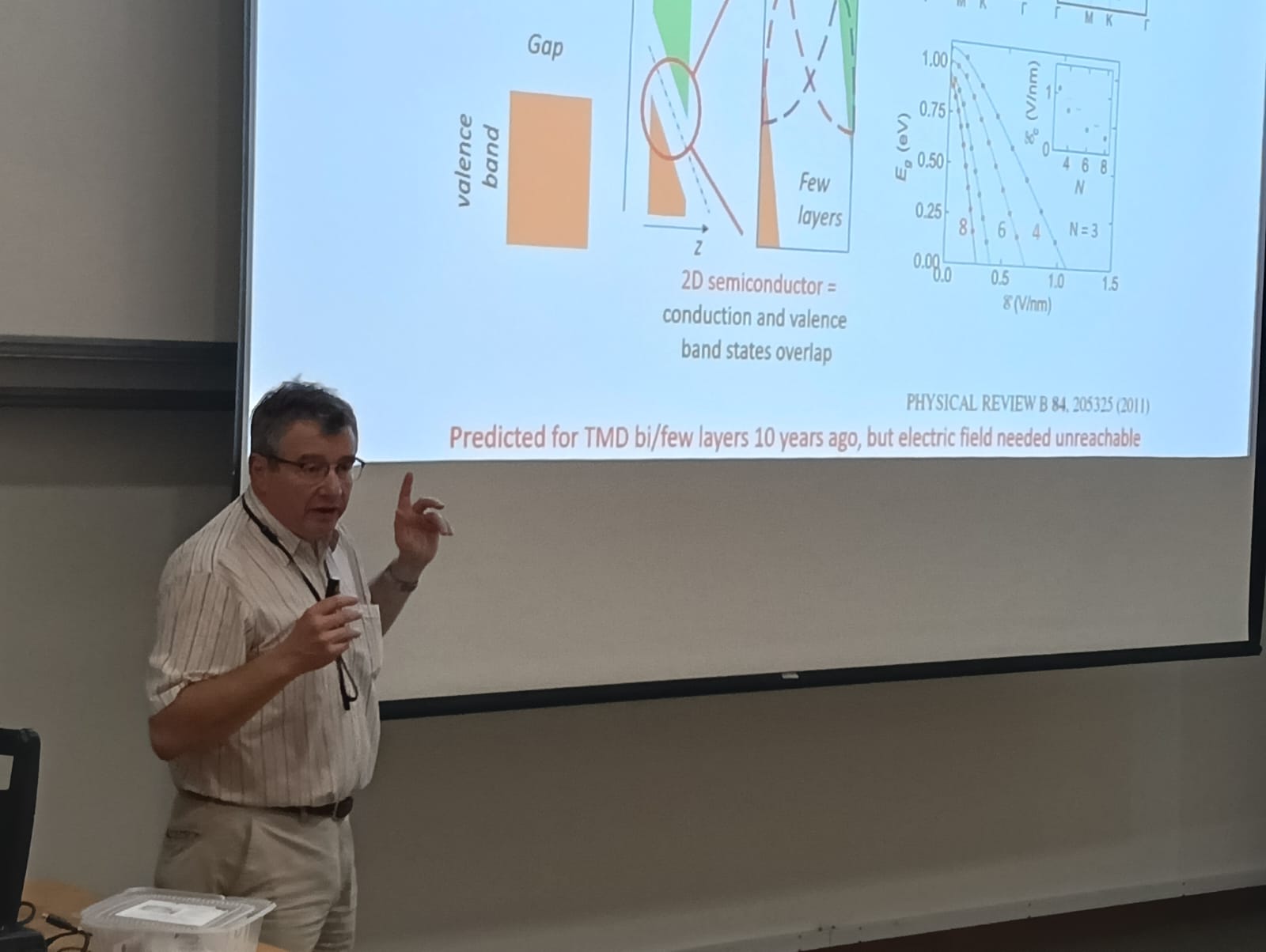 Moving beyond single materials, Prof Morpurgo highlighted how ionic-gated architectures can be extended to van der Waals heterostructures, where multiple two-dimensional layers are stacked together. In such systems, understanding band alignment at interfaces is critical for designing optoelectronic, spintronic, and quantum devices.