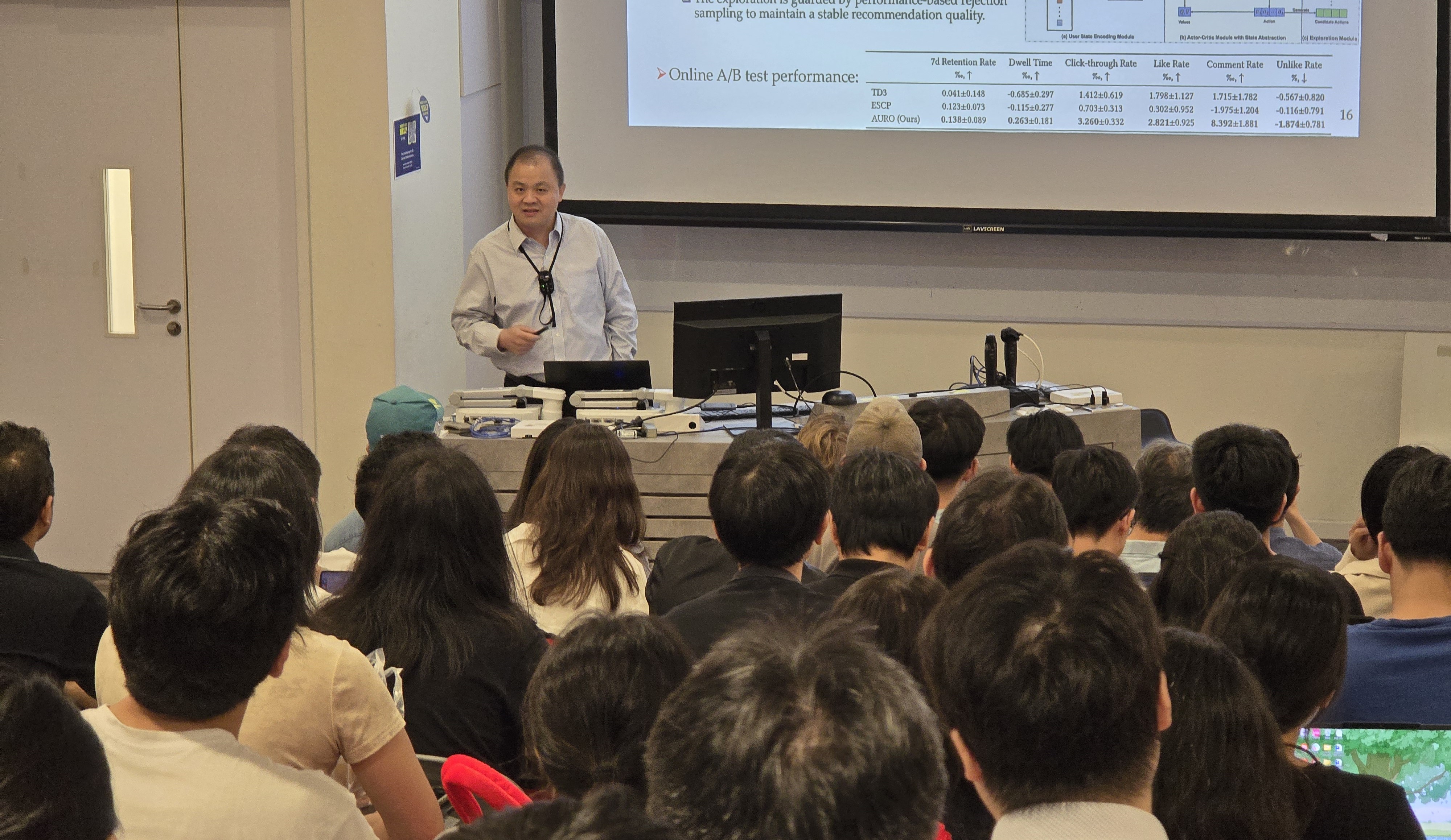 Prof An engages the audience, illustrating real-world reinforcement learning applications.