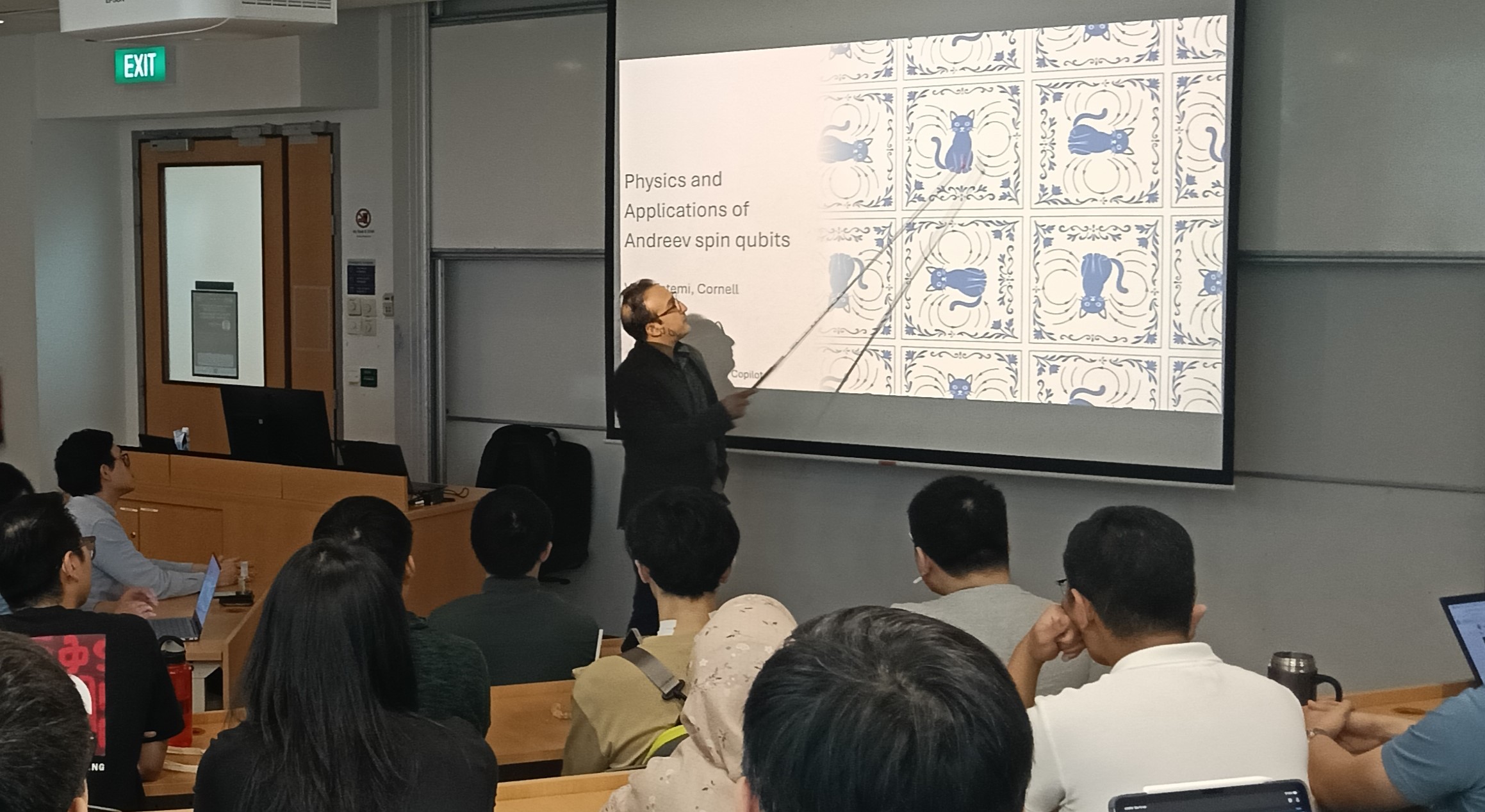 On 12 January 2026, Prof Valla Fatemi from Cornell University presented his talk titled “Physics and Applications of Andreev Spin Qubits”. The compact and insightful talk gave audiences an idea of how quantum bit (qubit) states can be ingeniously engineered from delicate experimental setups. His engaging presentation was delivered with great clarity and captivated audiences across all levels, ranging from postgraduate students to renowned experts in their respective fields.