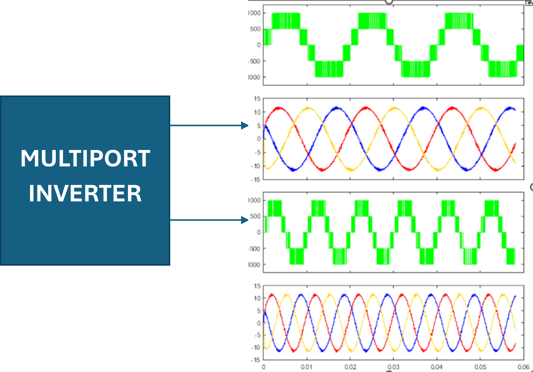 Figure 4. demonstrates the experimental validation of a multiport inverter prototype capable of bidirectional energy flow and independent control across ports. This design exemplifies how topology innovation bridges semiconductor capabilities and real-world power management, paving the way for next-generation DC distribution and hybrid energy storage systems.