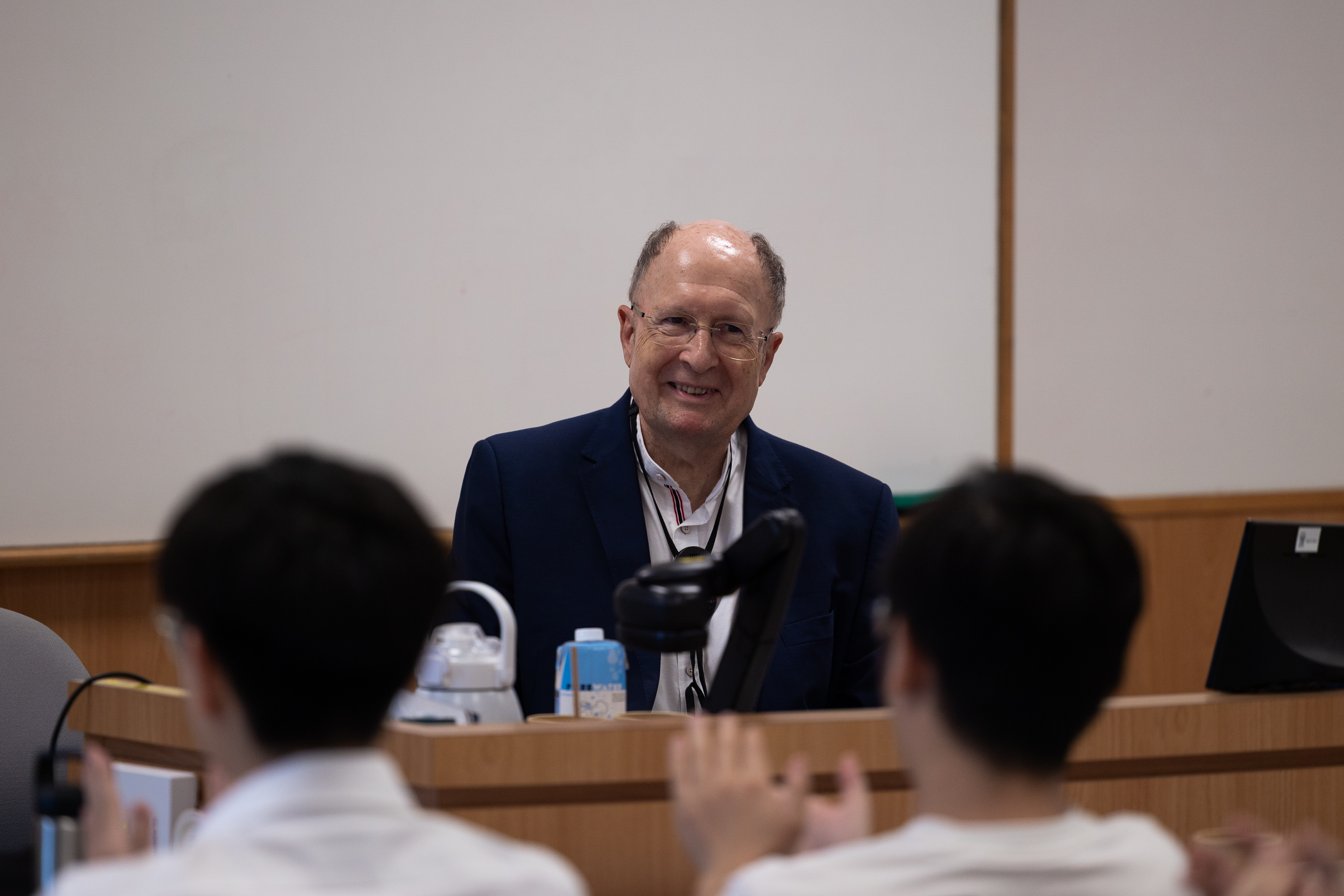 NTU students engage with Nobel Laureate Prof Sir Gregory Winter on his scientific motivations.