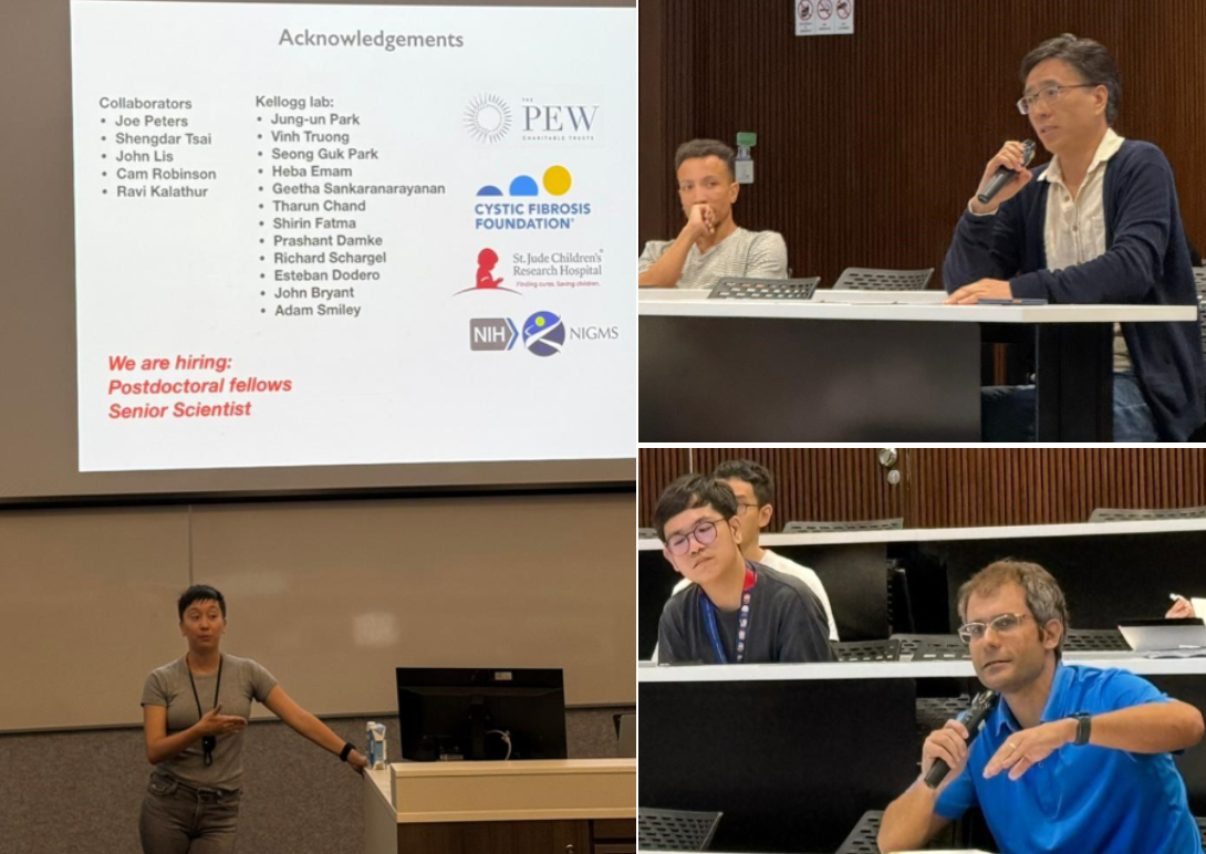 Dr Kellogg's research focuses on harnessing transposons, often referred to as "jumping genes," which have the natural ability to move within genomes and reshape genetic material. Her lab seeks to understand the complex interactions of components like TnsB, TnsC, TniQ, and Cas12k, which work together to achieve programmable DNA insertion at specific sites. Unlike traditional CRISPR systems that rely on cutting the DNA, CAST systems enable site-specific integration, reducing the risks associated with genome instability. Dr Kellogg explained how her lab uses advanced Cryo-Electron Microscopy (Cryo-EM) to visualise these interactions, thereby providing crucial structural insights into how these systems function.