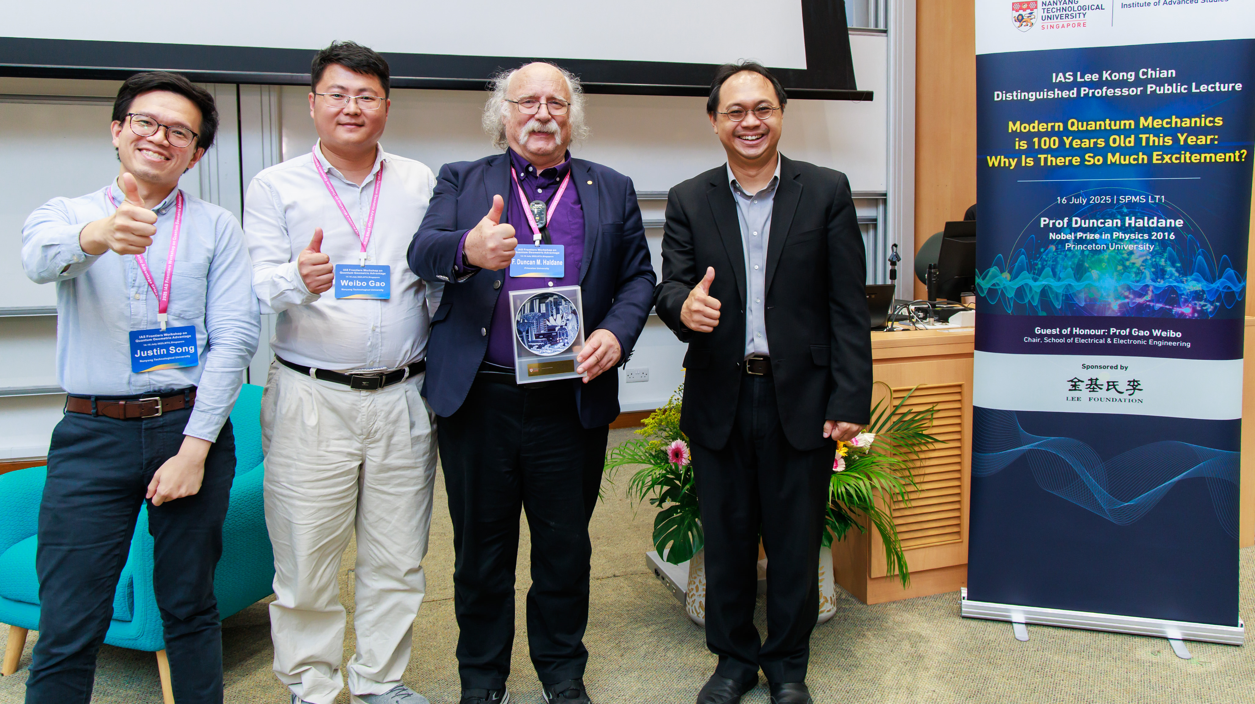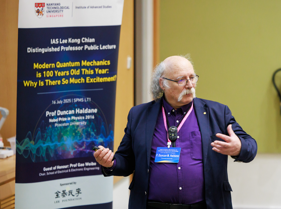 Our eminent speaker, Prof Duncan Haldane, delivered his Lee Kong Chian Distinguished Professor public lecture on 16 July 2025. Sponsored by the Lee Foundation, the lecture was hosted by NTU’s Institute of Advanced Studies in SPMS, and featured as a key highlight of the IAS Frontiers Workshop on Quantum Geometric Advantage from 14 to 16 July 2025.