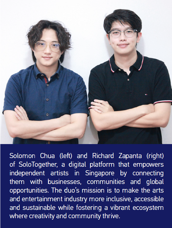 Solomon Chua’s idea for SoloTogether was sparked by a bruising encounter pitching live music to a business owner. Frustrated by how fragile the livelihoods of artists could be, he envisioned a platform to connect independent performers with venues and communities — an ‘Airbnb for the arts’ designed to make the ecosystem more inclusive and sustainable.