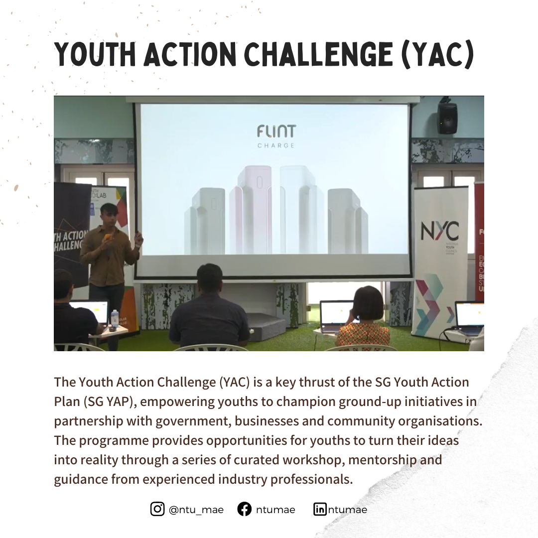 The Youth Action Challenge (YAC) is a key thrust of the SG Youth Action Plan (SG YAP), empowering youths to champion ground-up initiatives in partnership with government, businesses and community organisations. The programme provides opportunities for youths to turn their ideas into reality through a series of curated workshop, mentorship and guidance from experienced industry professionals.