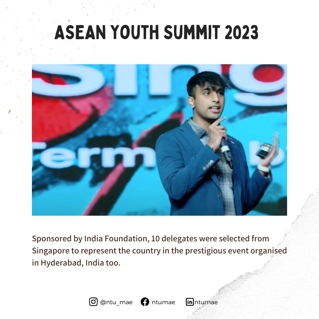 MAE student - Carlo Emmanuel Charles selected as the official representative from Singapore to attend the prestigious ASEAN Youth Summit 2023 in February
