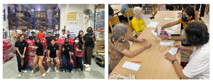 贾普特与志愿者一起为低收入家庭分发食物(左图),也陪伴长者参与艺术和手工艺活动(右图)