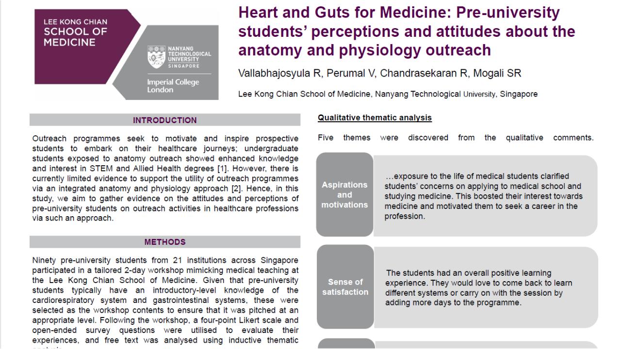 Considering the positive feedback and the effectiveness of SRIP in providing students with a meaningful introduction to research by engaging with LKCMedicine faculty, SRIP is now incorporated into the Scientific Enquiry and Evidence-Based Medicine (SEEM) module in Year 3 as a precursor to the Scholarly Project in Year 4.