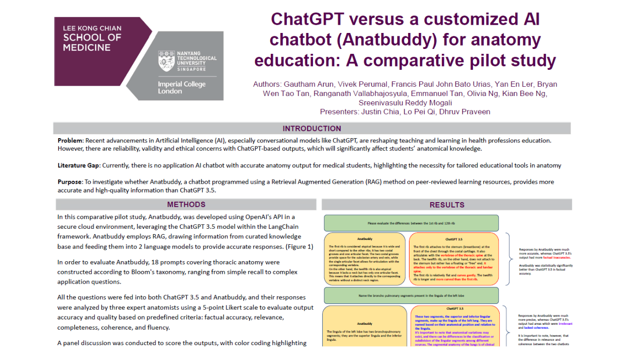 The SRIP has three main objectives. First, it provides students with a better understanding of the connections between the SEEM sessions across their curriculum. Second, students will be better prepared for the Scholarly Projects in Year 4 through unique insights into how research is conducted at LKCMedicine. Third, it will provide early exposure to “authentic research” which aims to increase students’ interest and appreciation for research in general.