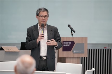 Speaking next was Prof Pang Weng Sun, the Vice-Dean for Clinical Affairs, who called Prof Lee a "superb negotiator" who did a great job supervising the completion of the Experiential Medicine Building and the Clinical Sciences Building.