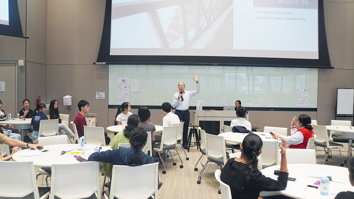 Some 200 pre-university students, teachers and parents gathered at the Learning Studio, which is home to the School’s TBL classes at the Novena Campus, for both events.