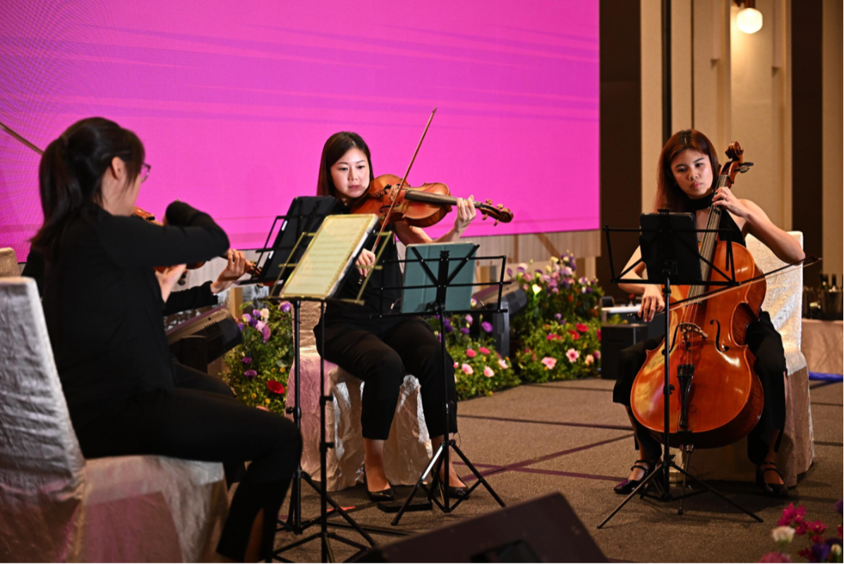 With spirits high, bellies were also filled with a scrumptious four-course meal accompanied by the melodious notes of the Meraki String Quartet, a premier all-female string quartet in Singapore.