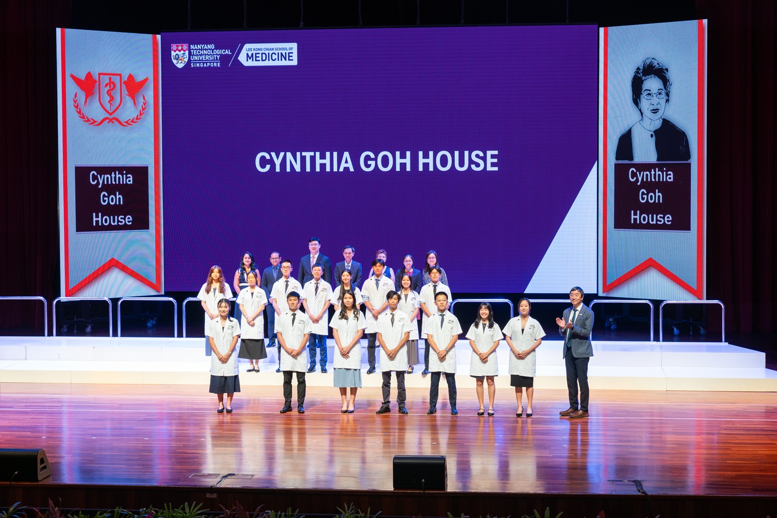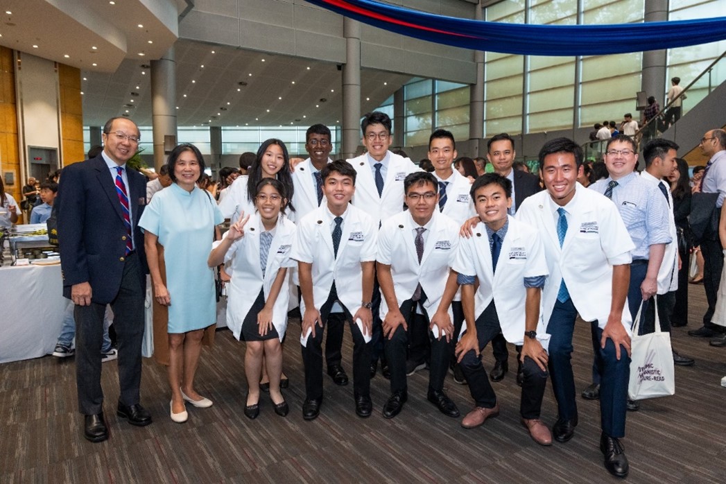 As students took to the stage to be donned in their white coats with the assistance of Prof Sung, Assistant Deans and House Tutors, parents of the Class of 2029 – beaming with pride – burst into applause.
