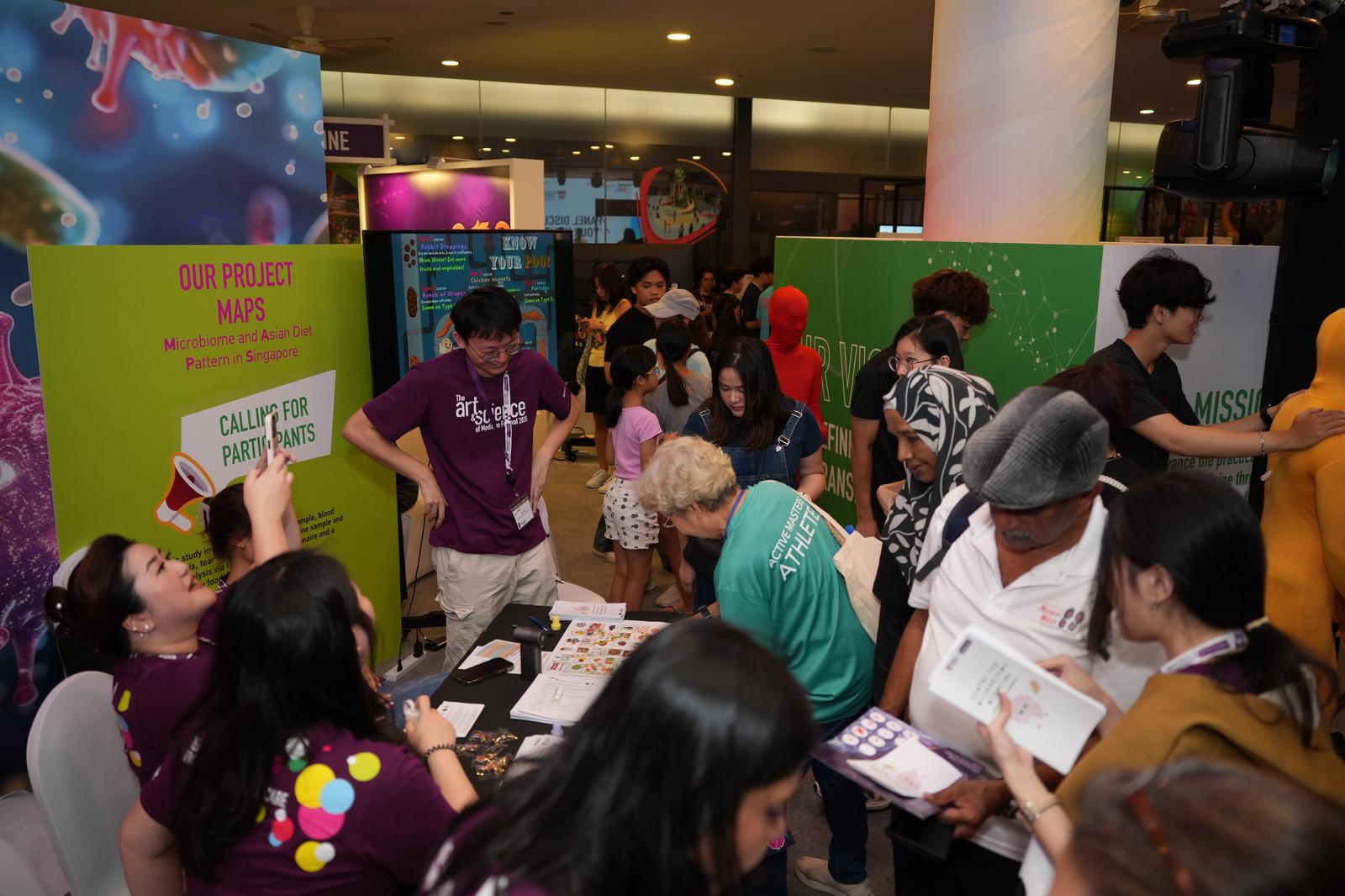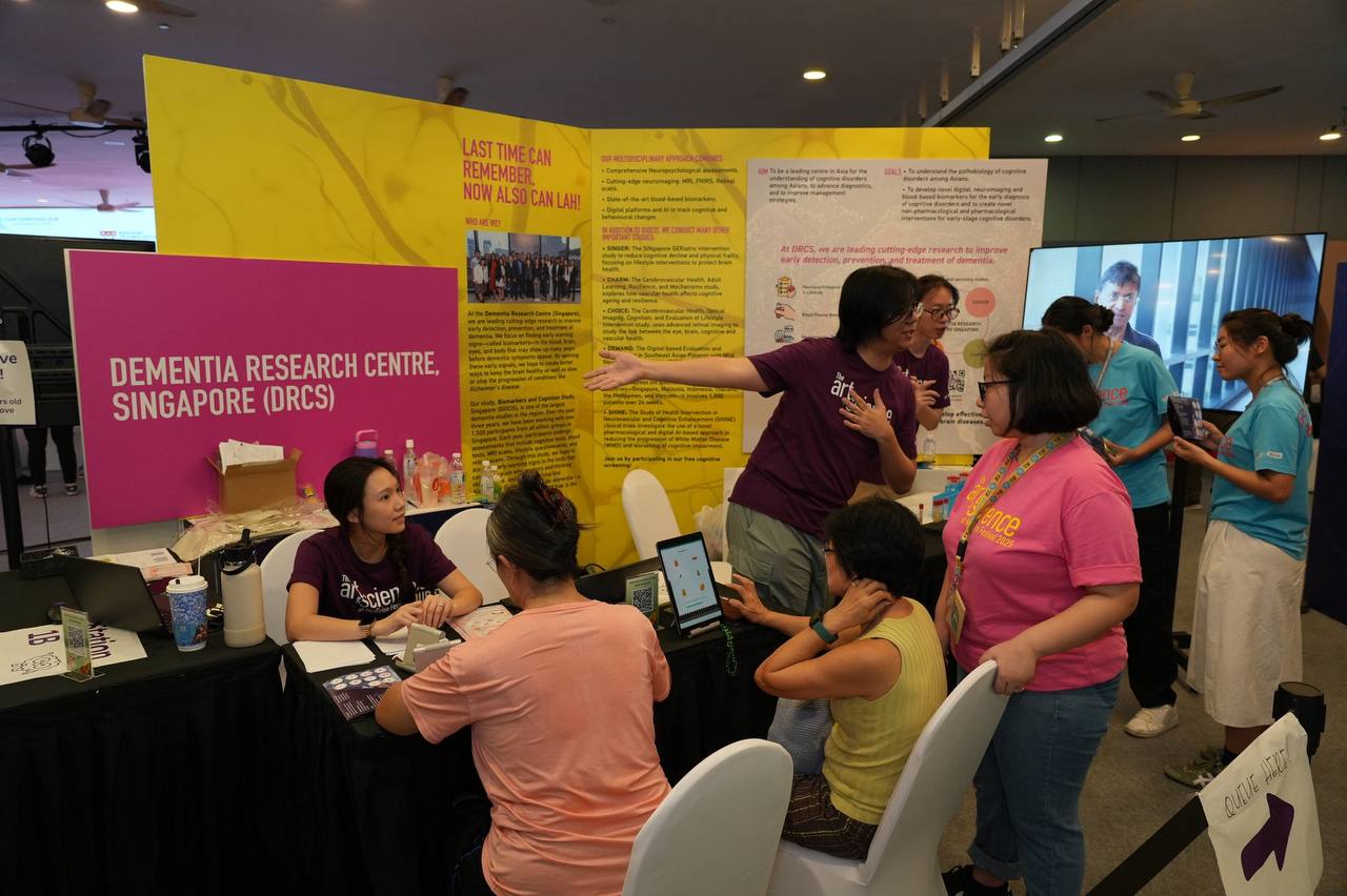 Booths such as the Centre of AI in Medicine, Rehabilitation Research Institute of Singapore, and Data Science and AI booth demonstrated the potential of cutting-edge analytics and AI methodologies; and researchers at the Infectious Disease booth wowed visitors with a do-it-yourself DNA extraction using strawberries. Other popular stops included the Microbes around Us, Dementia Research Centre (Singapore) and HELIOS-SG100K which provided festival goers with free cognitive and health screenings, respectively.