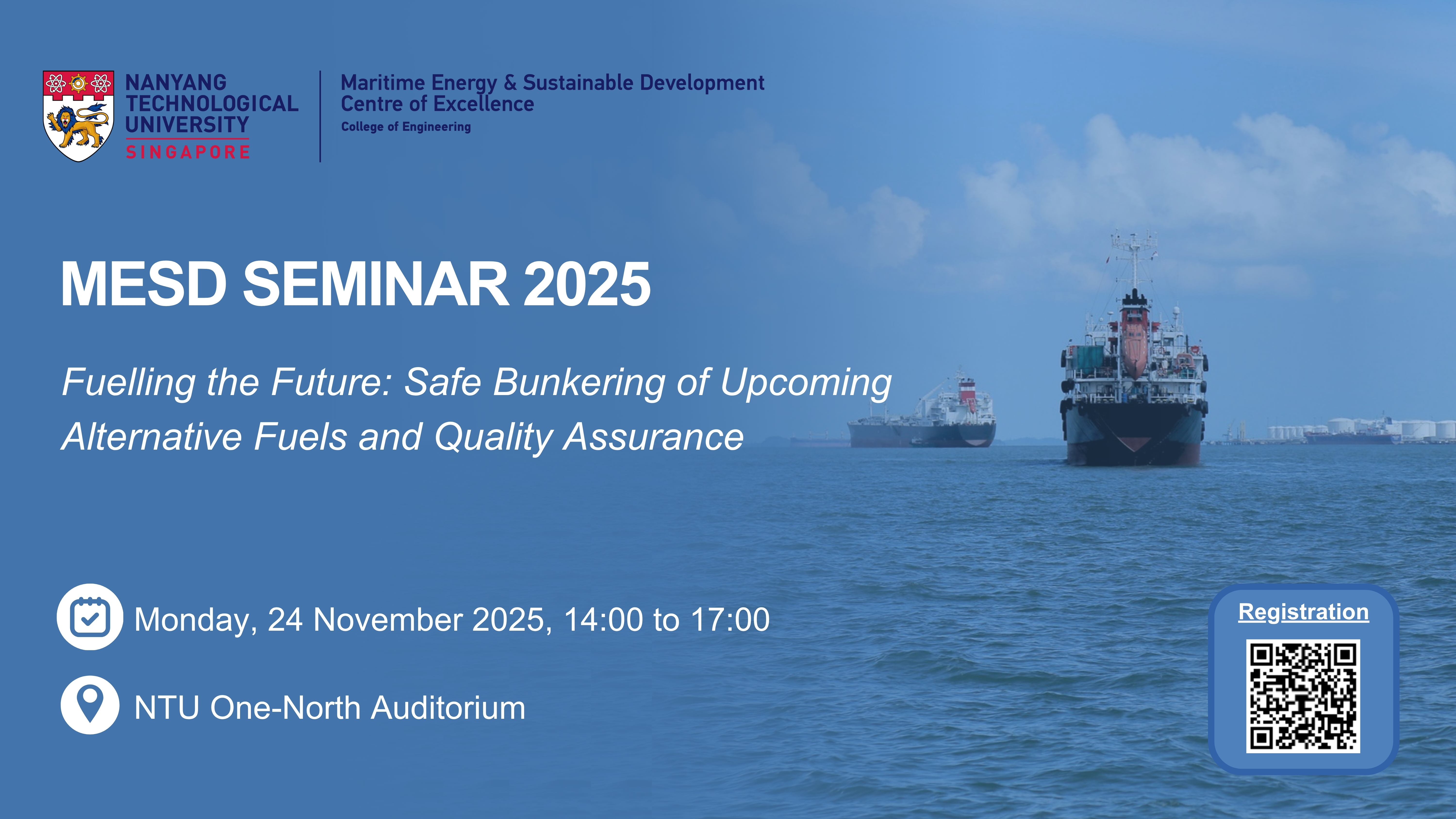 Get to know usLaunched in October 2017, the Maritime Energy & Sustainable Development Centre of Excellence (MESD CoE) is jointly funded by Singapore Maritime Institute (SMI) and Nanyang Technological University (NTU). As the first maritime research centre supported by SMI, MESD has the mission to deepen Singapore’s maritime R&D capability and Maritime Singapore’s position as a global maritime knowledge and innovation hub to support Singapore’s strategic maritime needs. With the focus on green port and shipping, MESD works closely with key stakeholders within the maritime cluster to develop innovative and sustainable solutions.