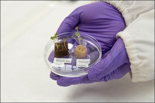 The new hydroponics substrate has an advantage over traditional substrates made from Rockwool, polyurethane and phenolic foams in that it is biodegradable and can become a source of nutrients for plants when they degrade.