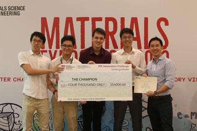 Five MSE undergraduate students took home the Champion Prize (Undergraduate Category) in the AY2018/2019 Ian Ferguson Innovation Challenge (IFIC) for their proposed innovative new product. The team of Jain Palash Abhineet, Low Ker Yang, Matthew Jun-Hui Reavley, Tan Zhen Yuan and Teo Ren Jie developed HyLite – a lightweight, low power electronic sensor to monitor dehydration through sweat. The sensor takes the form-factor of a watch, utilising electrode-less deposition of copper to integrate the circuit board with the actual watch itself, a simple display utilising electroluminescent paint for minimal weight and reduced power consumption while retaining maximum flexibility to achieve user comfort. It is intended to be a low-cost system with long battery life which is not invasive and simple to use by individuals at risk of heat injury.