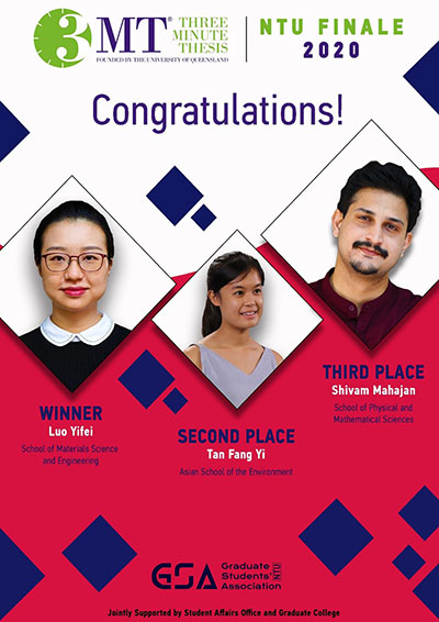 Winner of Three Minute Thesis (3MT) NTU Finale 2020 - Ms Luo Yifei