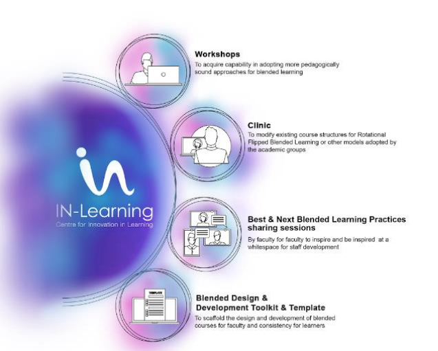 At the Centre for Innovation in Learning, we bring Blended Learning@NIE to life by supporting our faculty with hands-on initiatives like Design Clinics, bite-sized pedagogical tips in our monthly e-newsletter, and real-time sharing through IN-Scape, our vibrant online teaching community on Yammer. Whether it’s co-creating tech-enabled teaching solutions or exploring new ed-tech tools together, we are here to make blended learning more effective, flexible, and impactful with faculty at the center.