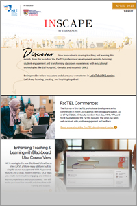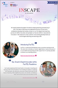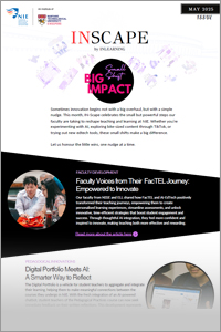 IN-Scape is NIE’s monthly newsletter by the Centre for Innovation in Learning, your go-to source for fresh ideas in teaching and learning. Each issue shines a spotlight on innovative practices by NIE faculty and staff, showcasing how they’re pushing boundaries in the classrooms.
