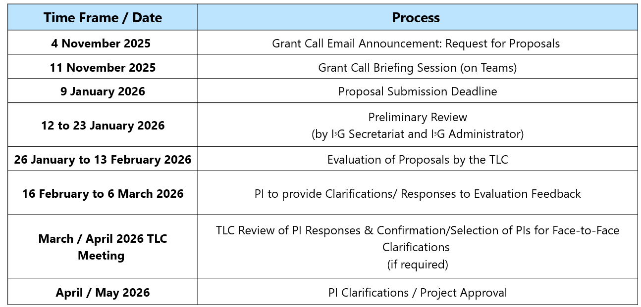 The Incentivising ICT Use Innovation Grant (I3G) supports NIE’s effort to enhance the use of ICT in teaching and learning. Proposed innovation projects should be guided by the NIE Teaching and Learning Framework for 21st Century Educators. The innovation projects will impact classroom practices in NIE for our students and faculty. The funding quantum is up to $120,000 per project and project duration up to 24 months.