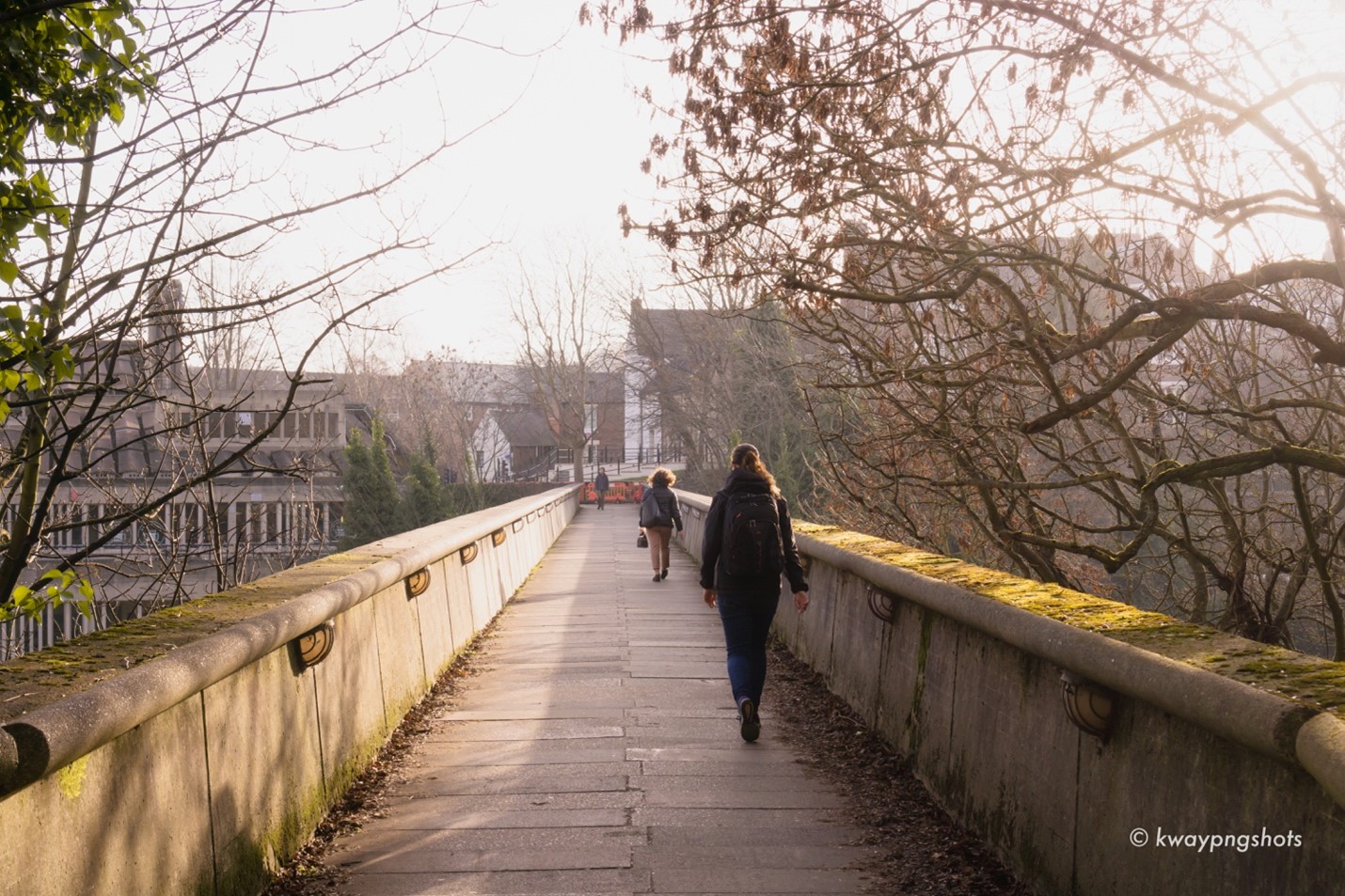 Upon some research for this article, I discovered that Kingsgate bridge was designed by the English architect Sir Ove Arup, whose work includes the Sydney Opera House. One of my favourite literary concepts is juxtaposition, where two things are placed close together for contrasting effect. As Guardian columnist Rowan Moore so eloquently argues, the elegant austerity of Kingsgate bridge is, in fact, a deliberate complement to the imposing heft of Durham Cathedral behind it. Together, the two structures exemplify “masonry’s full range of mass and levitation”, with “the stone cathedral tower piling up towards the sky” while “the concrete bridge rest[s] in the air” (2017). I wish that as a student, I had the wisdom to see how literary juxtaposition was equally compelling in real life – to better appreciate the deliberate and harmonious contrast between Kingsgate bridge and the medieval stone city surrounding it.