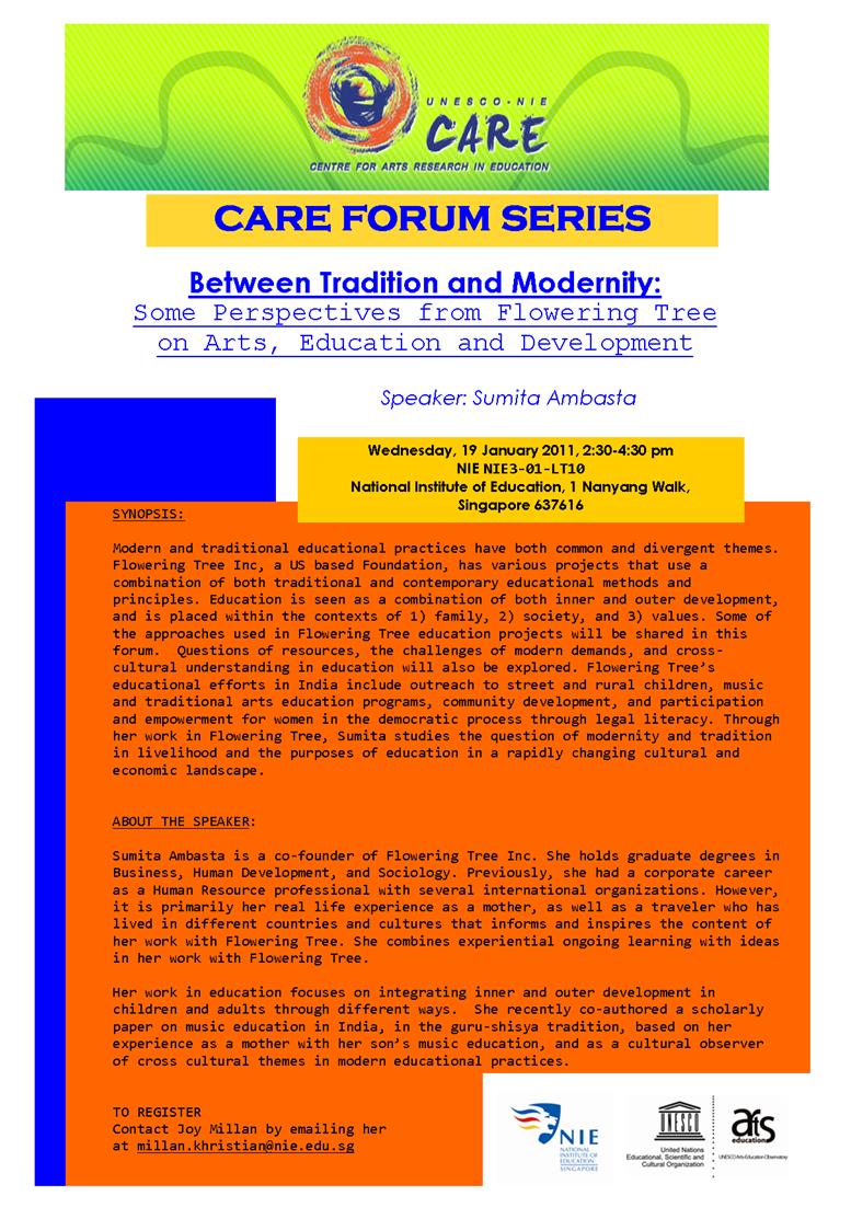 CARE FORUM SERIES: Between Tradition and Modernity: Some Perspectives from Flowering Tree on Arts, Education & Development