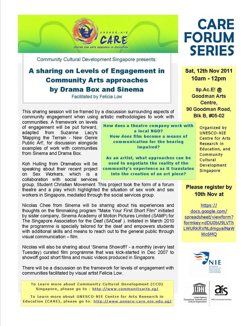 CARE FORUM - A Sharing on Levels of Engagement in Community Arts Aproaches by Drama Box and Sinema