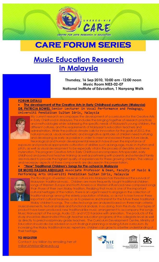 CARE Forum Series: Malaysian Music Education Research in Malaysia