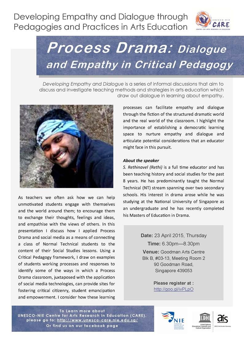 Through this forum, we will also hope to expand the concept of drama in education, beyond that of skills building and performance.