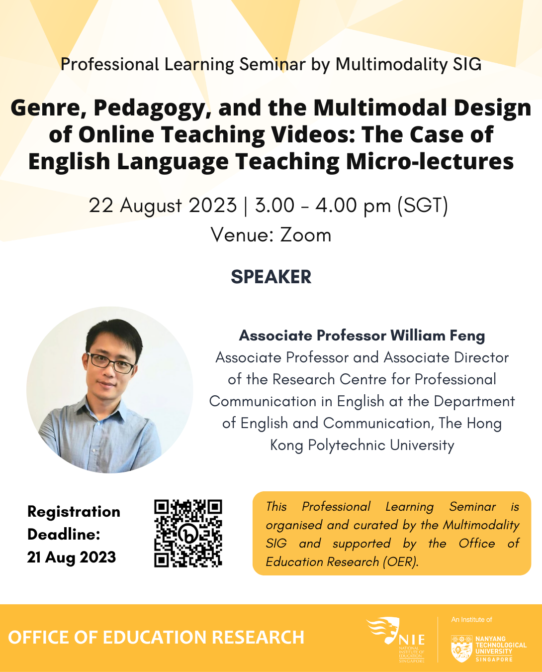 Professional Learning Seminar by Multimodality Special Interest Group - Genre, pedagogy, and the multimodal design of online teaching videos: The case of English language teaching micro-lectures