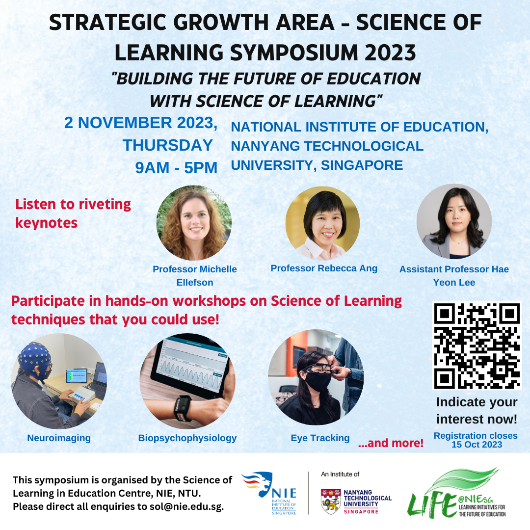 Target audience: Academics and researchers in the fields of Science of Learning and related areas, MOE teachers and officers, and students, among others.
