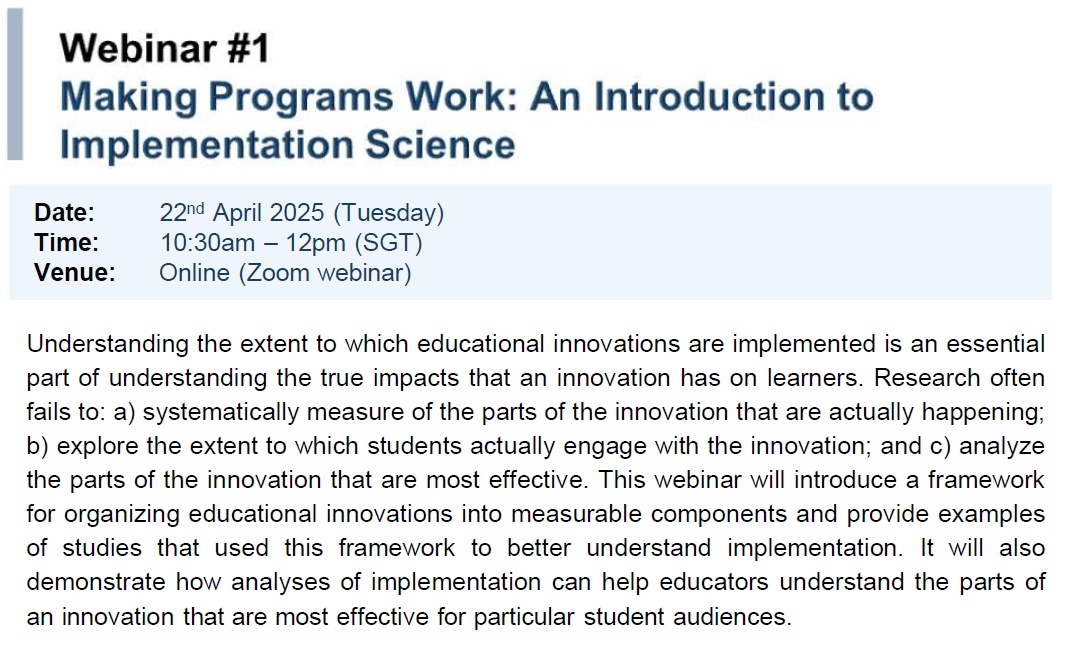 Dr Century has an upcoming webinar series on introduction to implementation science and understanding key factors for sustainability this April.